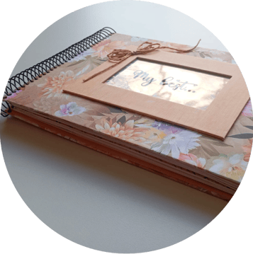Criamos álbuns de scrapbook únicos, refletindo sua história e momentos especiais com criatividade.
